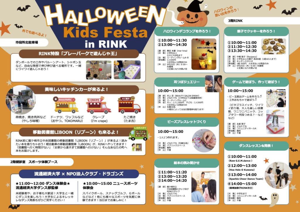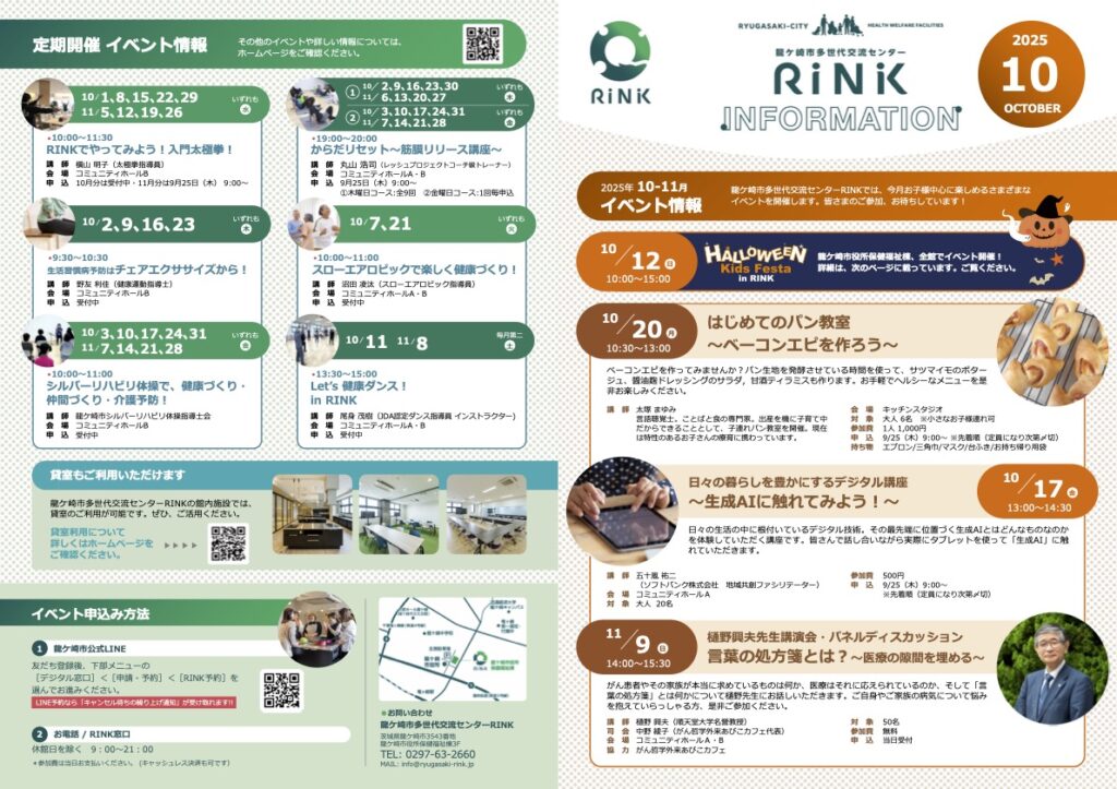 ※「ハロウィンデコランプを作ろう!」「親子でクッキーを作ろう!」は事前申し込みが必要です。(龍ケ崎市公式LINE、お電話、またはRINK窓口からお申し込みいただけます)